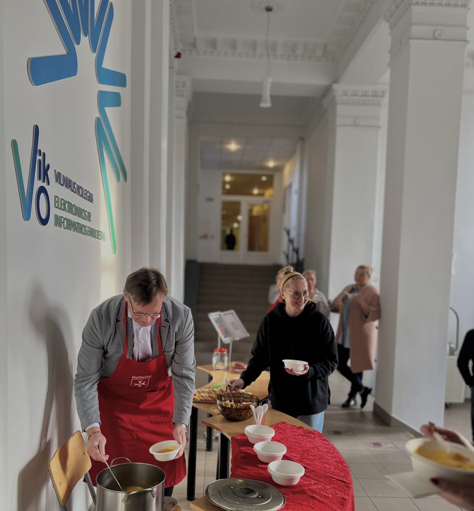 Šiandien Elektronikos ir informatikos fakultete vyko „Maltiečių sriuba“ akcija – dėkojame visiems, kurie atėjo, paragavo ir prisidėjo prie paramos senjorams.