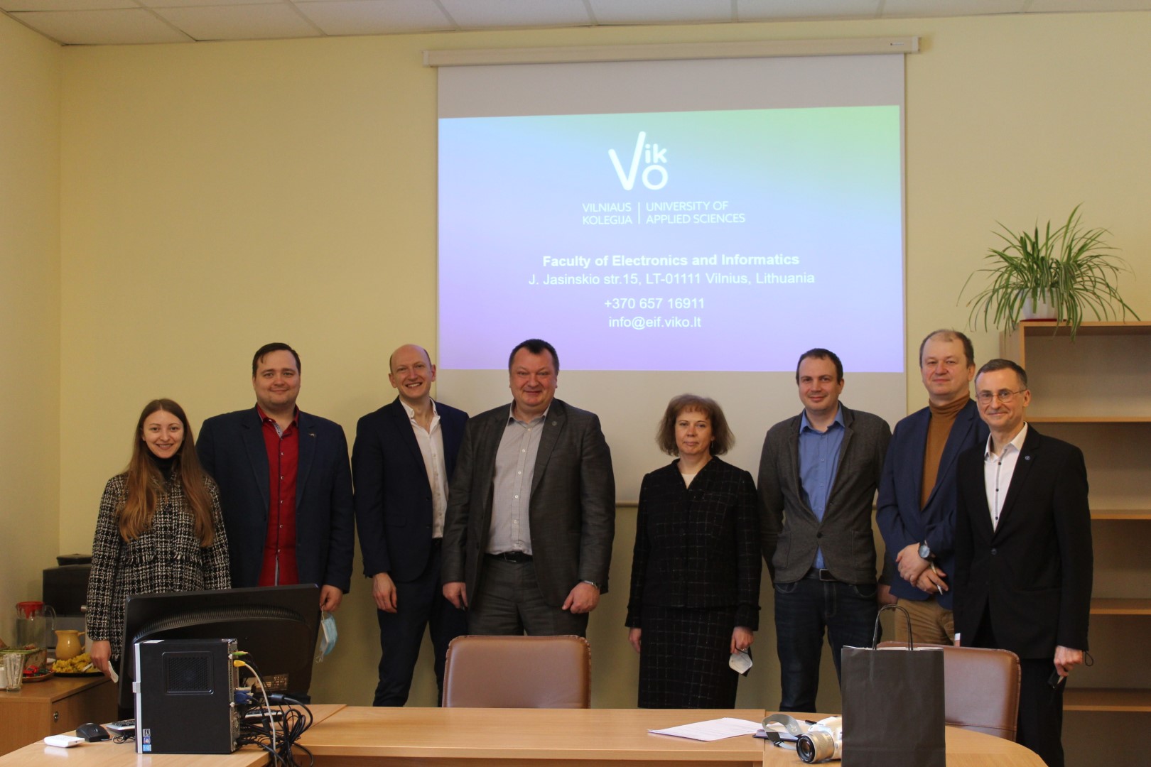 2022 m. sausio 31 d. įvyko Vilniaus kolegijos Elektronikos ir informatikos fakulteto ir Liepojos universiteto (Latvija) atstovų susitikimas. Susitikime dalyvavo Patriks Morevs (Liepojos universiteto tarptautinio bendradarbiavimo vyriausiasis specialistas), Maksims Žigunovs (Liepojos universiteto dėstytojas) ir Sintija Leigute (tarptautinio bendradarbiavimo koordinatorė). Svečius sutiko Fakulteto dekanas dr. Romanas Tumasonis, prodekanė dr. Loreta Savulionienė, Technologijų centro vedėjas dr. Eugenijus Mačerauskas, Programinės įrangos katedros dėstytojas Marius Gžegoževskis ir Partnerystės ir projektų skyriaus vedėjas Vytautas Lauciūnas ir už Erasmus+ programos koordinavimą Fakultete šiuo metu atsakinga Judita Milkevičiūtė. Susitikimo metu aptartos bendradarbiavimo galimybės: studentų dalyvavimas mokslinėse konferencijose, tarptautinės vasaros stovyklos (Summer School) organizavimas, Liepojos universiteto dėstytojų dalyvavimas VIKO organizuojamoje tarptautinėje dėstymo savaitėje (International Teaching Week), studentų praktikos mainai, dėstytojų dalyvavimas Erasmus+ personalo mobilumo programoje ir kiti bendri projektai. Kartu su dr. E. Mačerausku buvo aptartos galimos abiejų aukštųjų mokyklų studentų mokslinių draugijų veiklos sritys.