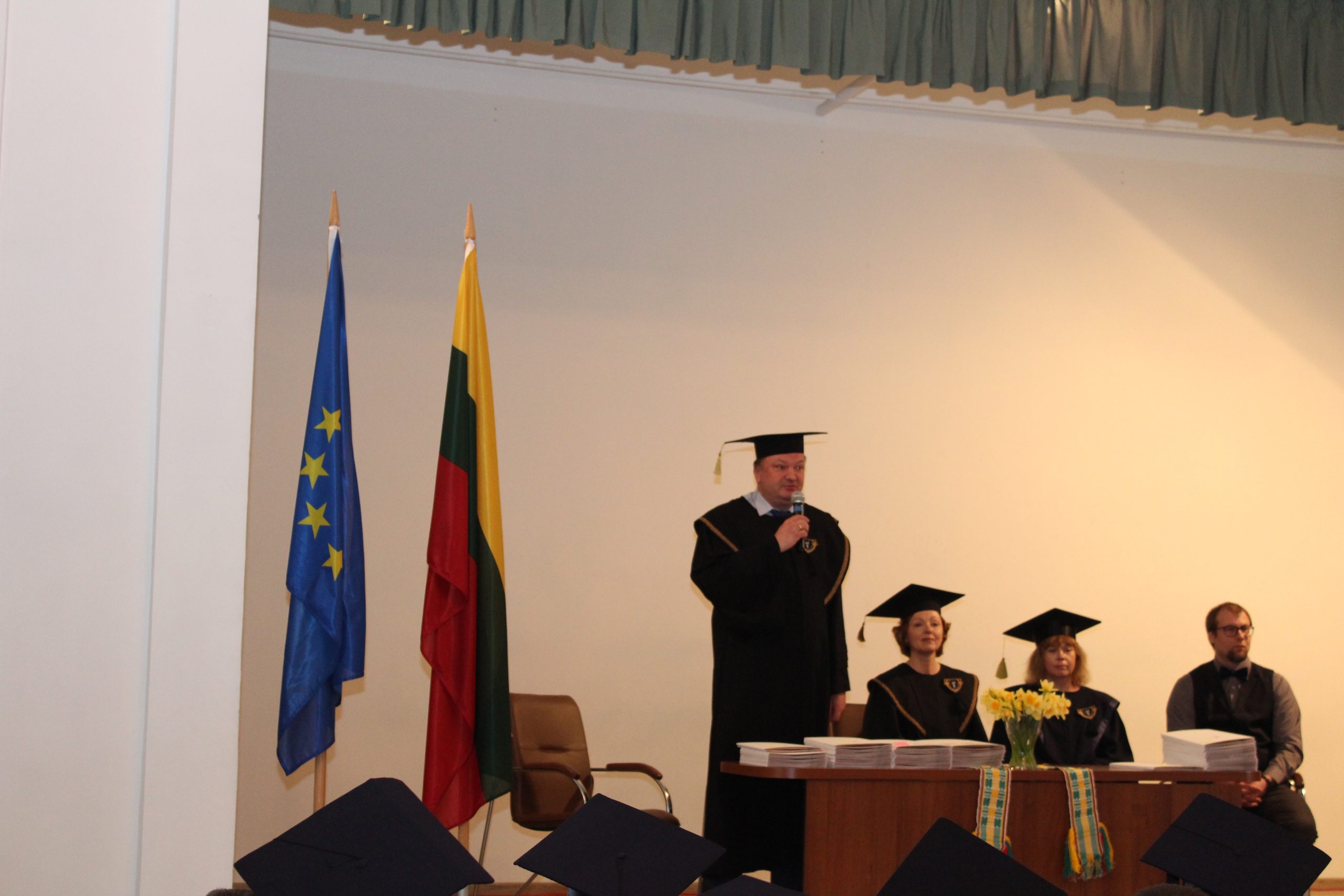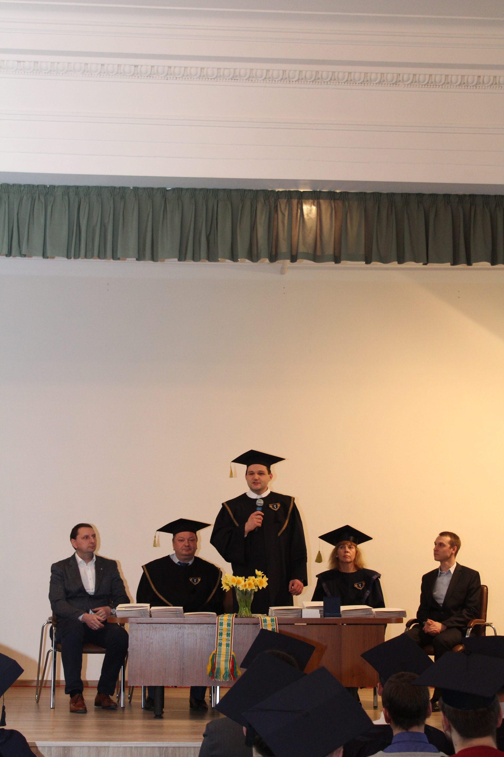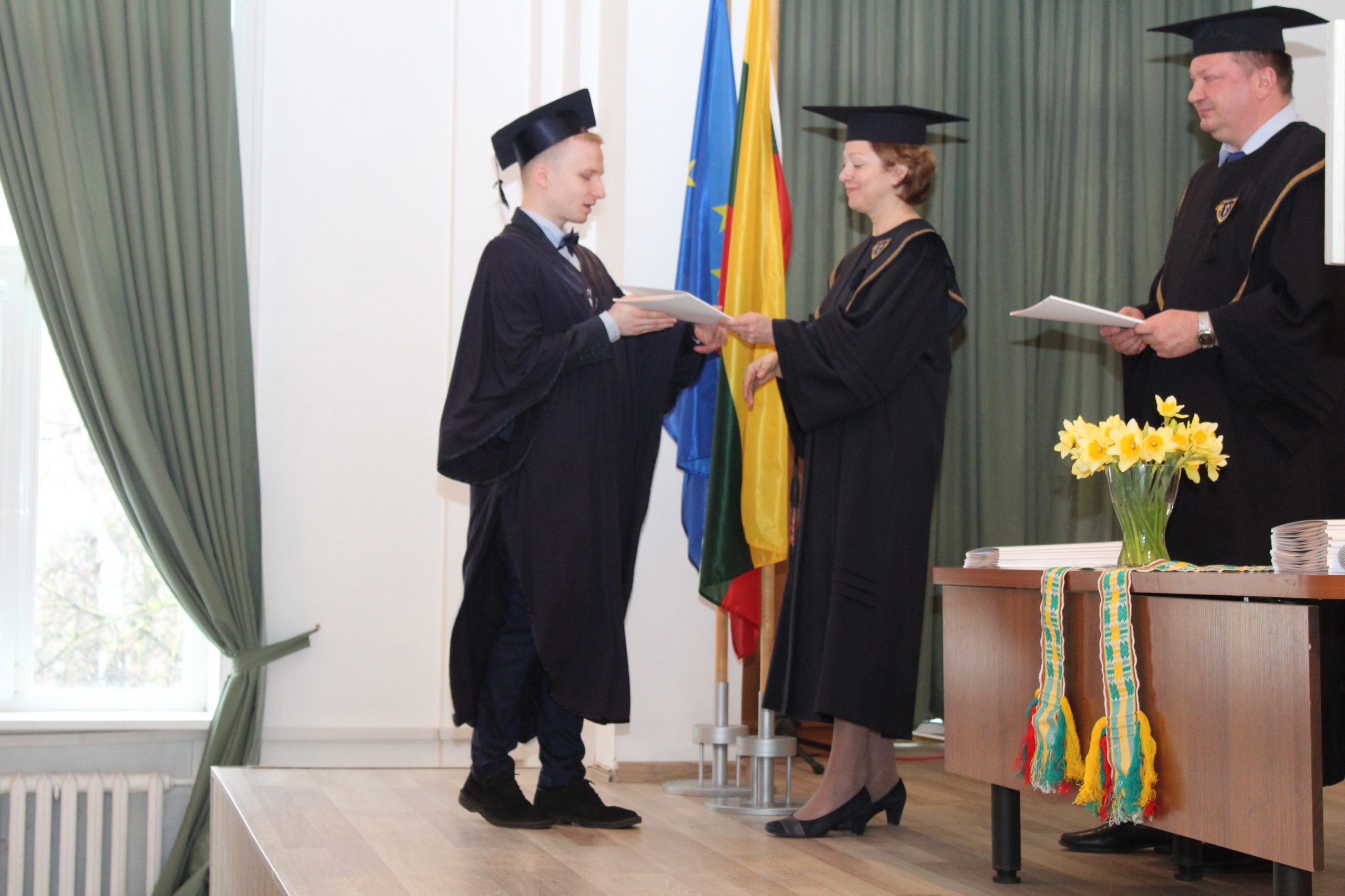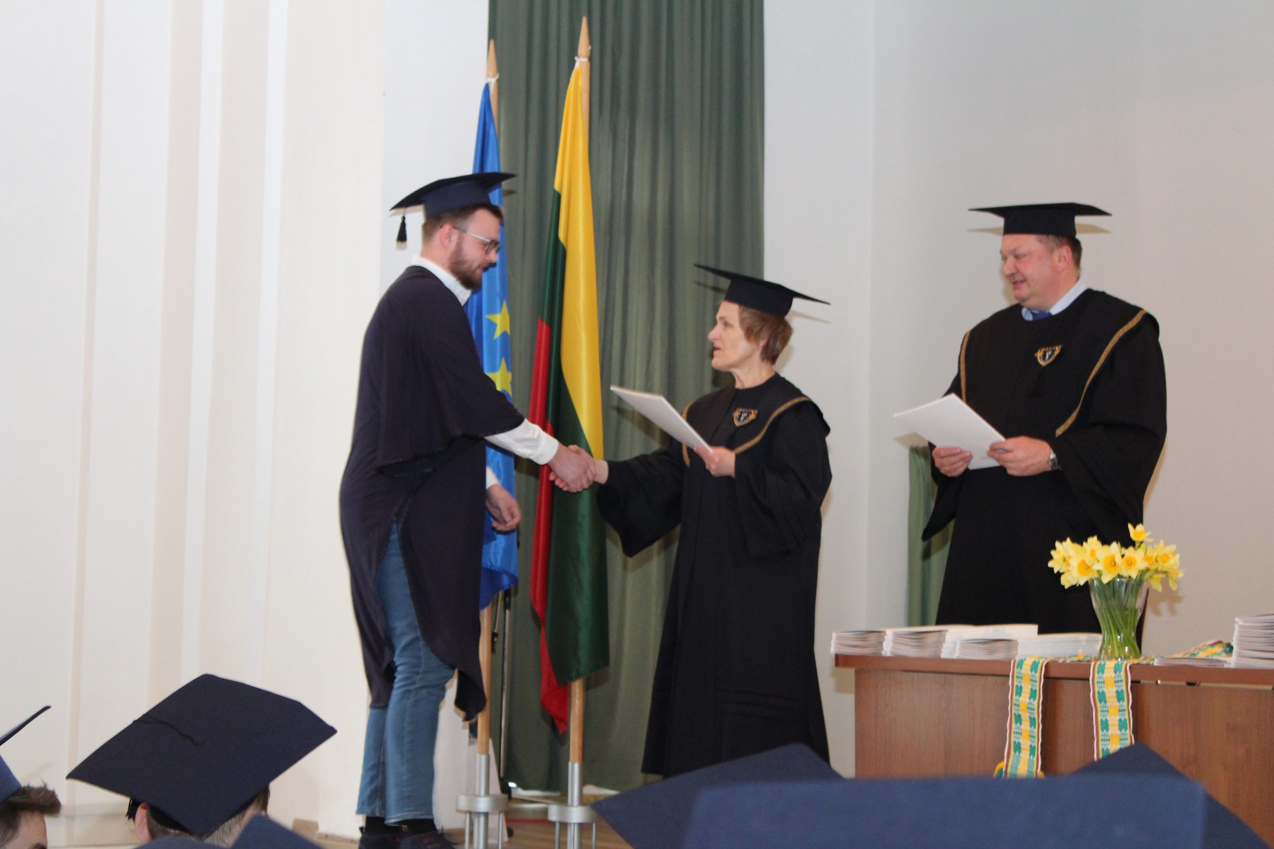 Absolventus sveikino ir sėkmės ateityje linkėjo Vilniaus kolegijos direktorės pavaduotoja studijoms Rita Liepuonienė, Direktoriaus pavaduotojas ekonomikai Andriejus Sadauskis, Direktorės pavaduotoja mokslui ir partnerystei Nijolė Zinkevičienė, Elektronikos ir informatikos fakulteto dekanas dr. Romanas Tumasonis, prodekanė dr. Loreta Savulionienė, Studijų skyriaus vedėja Dalė Neverbickaitė bei katedrų vedėjai: dr. Mindaugas Liogys, dr. Irma Šileikienė, Paulius Šakalys ir dr. Antoni Kozič.