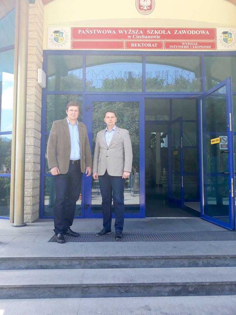 Gegužės 23-25 d. Elektronikos katedros vedėjas, docentas dr. Antoni Kozič ir docentas dr. Andžej Lučun lankėsi Lenkijoje, Ciechanovo valstybinėje aukštojoje profesinėje mokykloje (the State Higher School of Vocational Education). Vizito metu bendravome su prorektoriumi dr. inž. Grzegorz Koc, aptarėme bendrojo darbo ir tolimesnio bendradarbiavimo galimybes bei bendradarbiavimo sutarties tarp dviejų institucijų atnaujimą. Susitikimų metu diskutuota apie platesnio bendradarbiavimo galimybes su Elektronikos, žurnalistikos ir multimedijos technikos fakulteto dekanu dr. inž. Andrzej Korneta, aptartos abiejų institucijų studentų stažuočių Lietuvos ir Lenkijos įmonėse galimybės, tarptautinio elektronikos konkurso EIFtronic2019 bendrų užduočių rengimo galimybės. Išvykos metu kartu su Erasmus+ programos koordinatoriumi Sylwester Czaplicki aptartos studentų ir dėstytojų mainų plėtros bei tolimesnio bendradarbiavimo galimybės. Taip pat aplankėme atnaujintas laboratorijas ir dalyvavome Ciechanovo aukštosios mokyklos studentų organizuotoje mugėje.