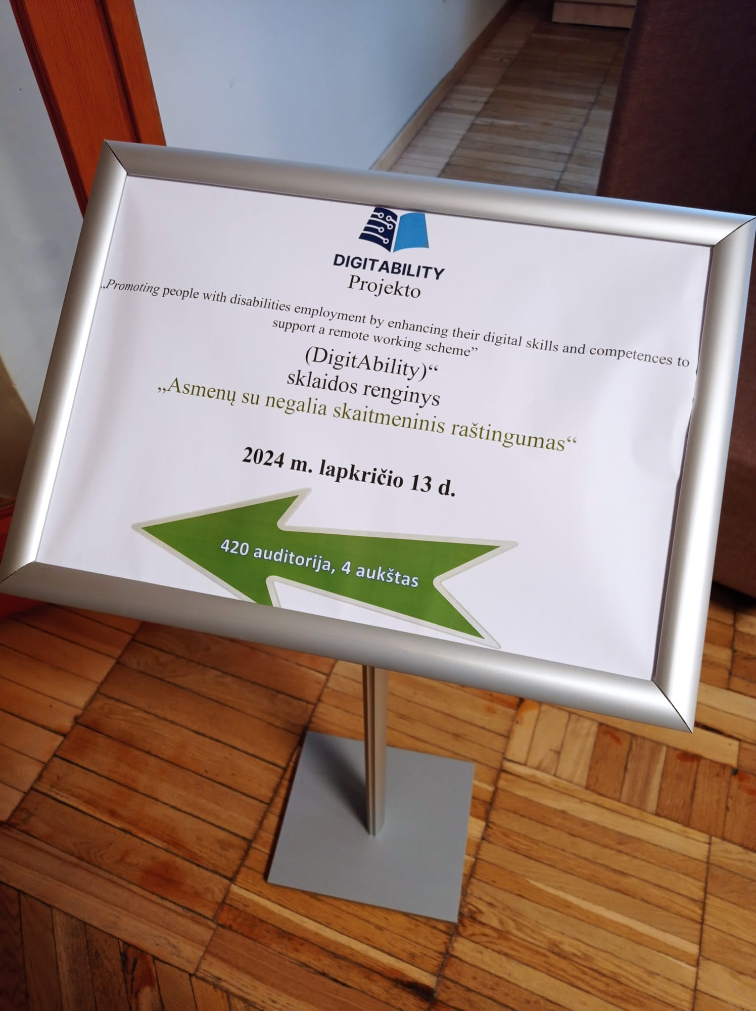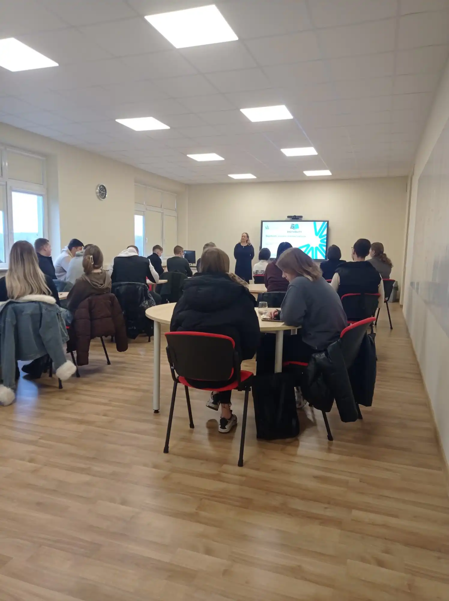 Erasmus+ projekto „Promoting people with disabilities’ employment by enhancing their digital skills and competences to support a remote working scheme“ (DigitAbility; Nr. 2022-1-IT01-KA220-VET-000087590) viešinimo renginyje Ekonomikos fakultete 2024 m. lapkričio 13 d. studentams buvo pristatyti projekto rezultatai.
