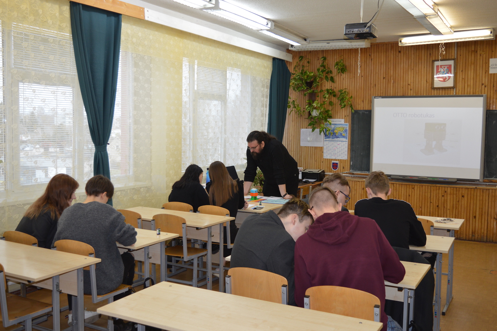 Kovo 1 d. Elektronikos ir informatikos fakulteto lektorius Paulius Šakalys, elektronikos laboratorijų vedėjas Tomas Kasperavičius ir EI17A grupės studentas Mantas Vanagas dalyvavo Vilkaviškio „Aušros“ gimnazijos organizuotame atvirų durų dienos renginyje. Renginio metu 8-12 klasių moksleiviai buvo supažindinti su Vilniaus kolegija, Elektronikos ir informatikos fakultete esančiomis studijų programomis, robotikos dirbtuvėse vykdoma popaskaitine veikla. Dėstytojai vedė dvi pažintines – praktines pamokas tema: „Linksmieji robotai – pažink ir kurk“, kurių metu moksleiviai konstruodami robotukus susipažino su robotinių sistemų sudarymo ir valdymo principais. Pažintinė pamoka sulaukė didžiulio susidomėjimo, moksleiviai ir mokytojai buvo pakviesti atvykti į fakultetą iš arčiau susipažinti su turima laboratorine įranga ir dėstytojais.