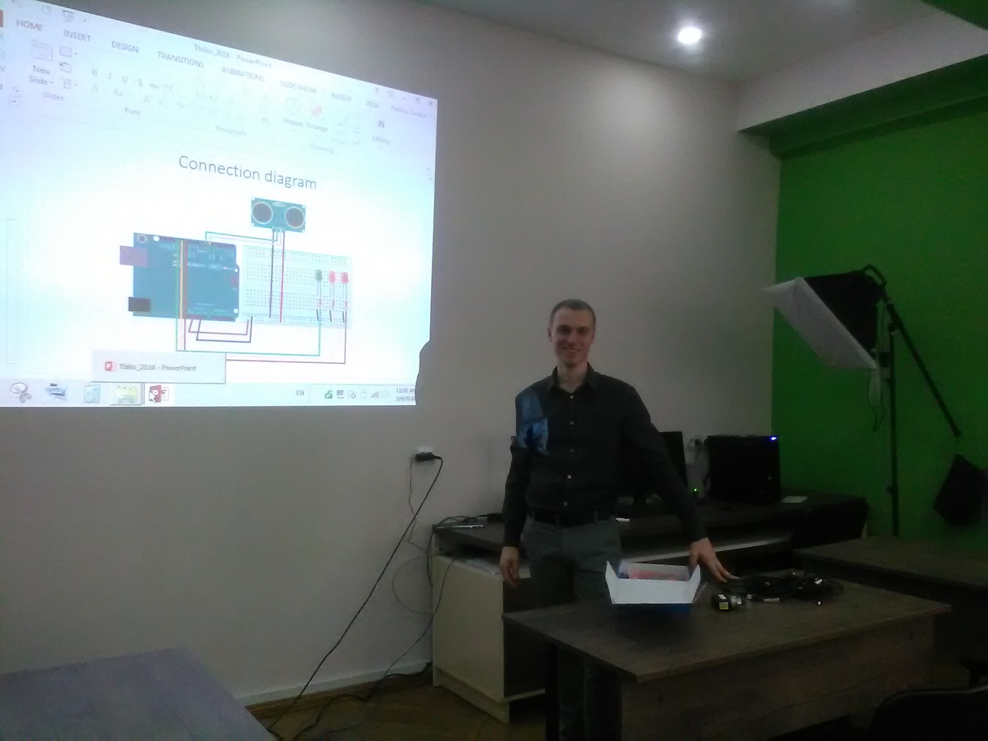 Vizito metu dėstytojas skaitė paskaitų ciklą apie programuojamų loginių valdiklių taikymo galimybes kuriant mechatronines sistemas. Paskaitų metu buvo organizuojamos praktinės – taikomosios užduotys, skirtos studentų supažindinimui su atvirojo kodo programuojama elektronika taikant “Arduino” elementinę bazę.