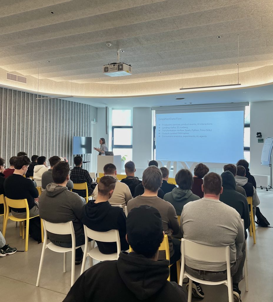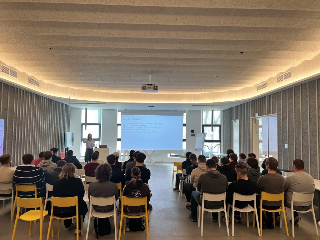 Apsilankymo metu duomenų inžinerė Emilija Puronaitė vedė studentams paskaitą „Data Engineering“. Paskaitos metu „WIX“ atstovė praktiškai ir išsamiai nagrinėjo, kaip duomenų sritis yra struktūrizuota dideliu mastu, tyrinėjant technologijas ir procesus, kurie ją palaiko.