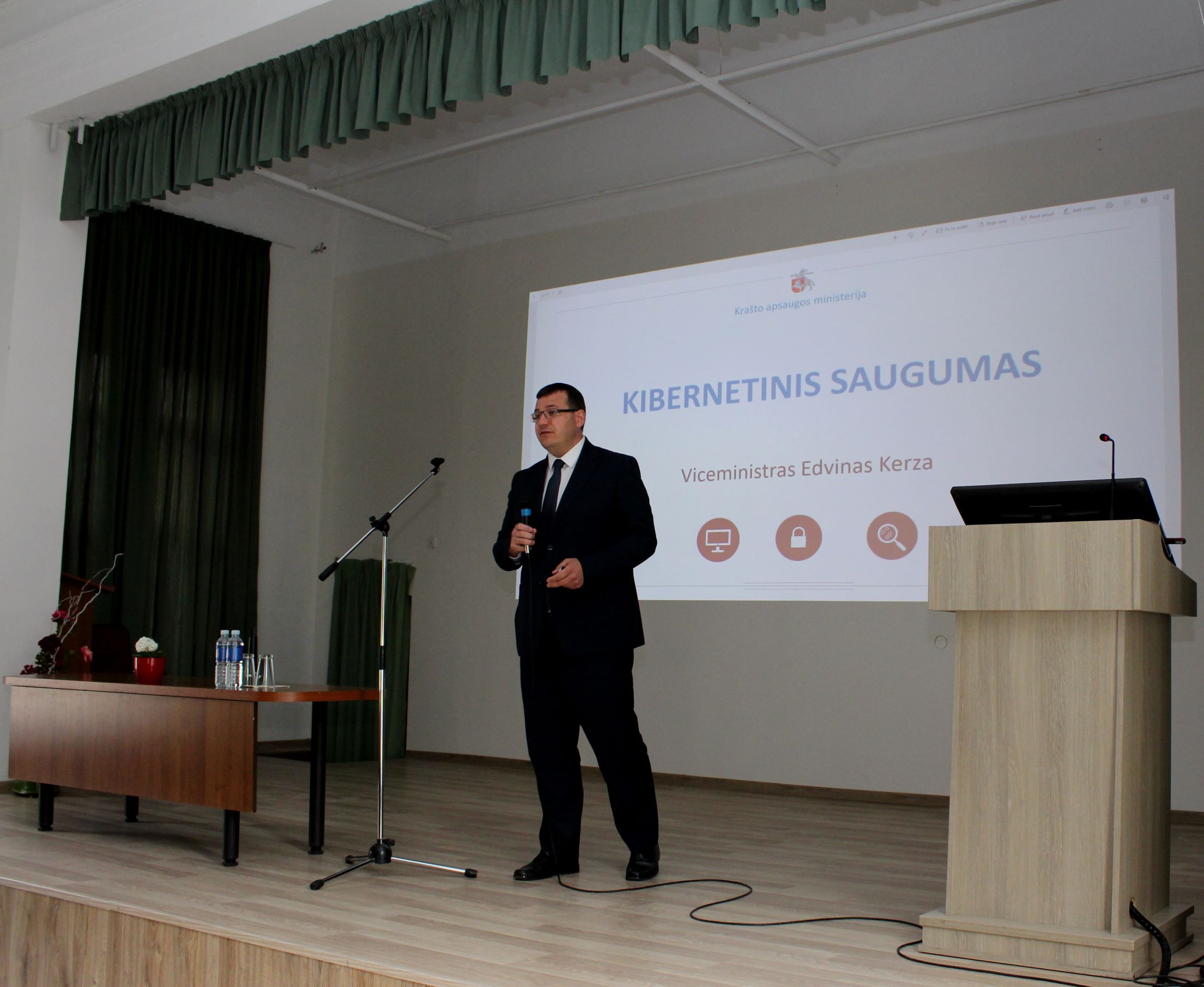 Gegužės 7 d. Vilniaus kolegijoje, Elektronikos ir informatikos fakultete, vyko seminaras ,,Kibernetinis saugumas“. Seminaro metu su studentais, dėstytojais ir administracijos darbuotojais kibernetinio saugumo aktualijomis dalijosi krašto apsaugos viceministras Edvinas Kerza, Lietuvos kariuomenės ir Valstybės įmonės „Infostruktūra“ atstovai.
