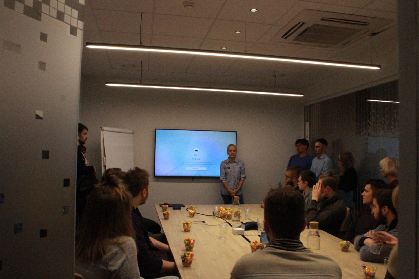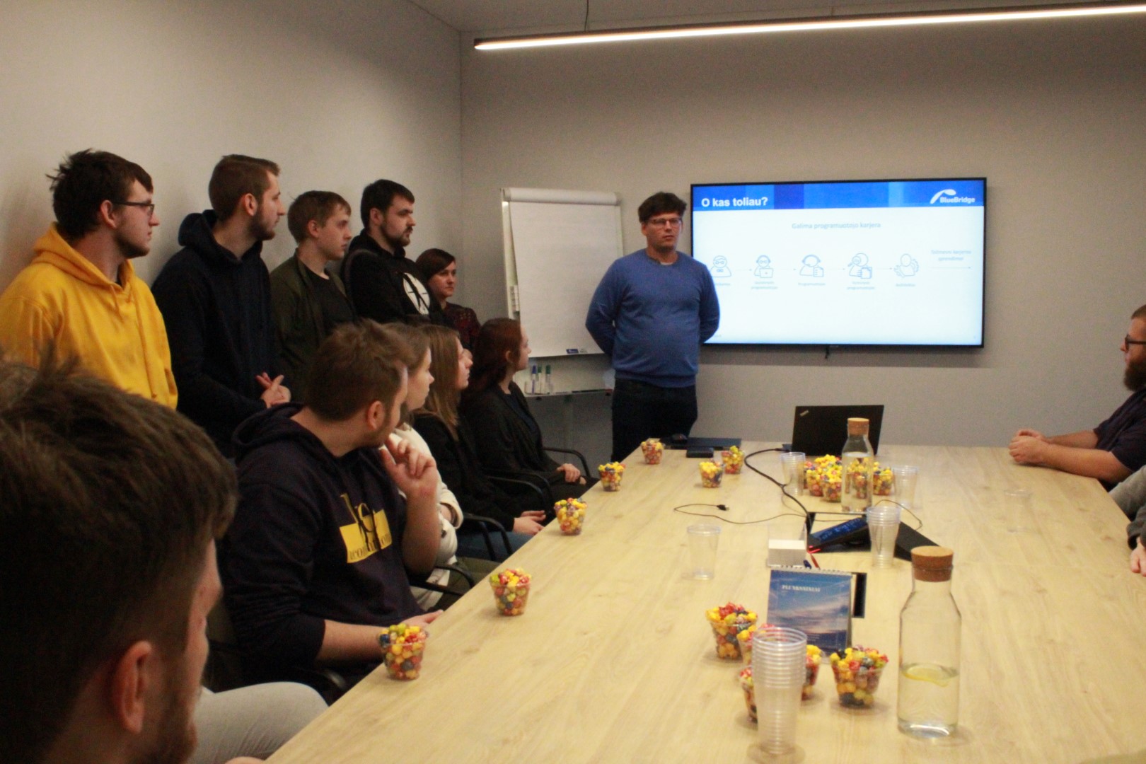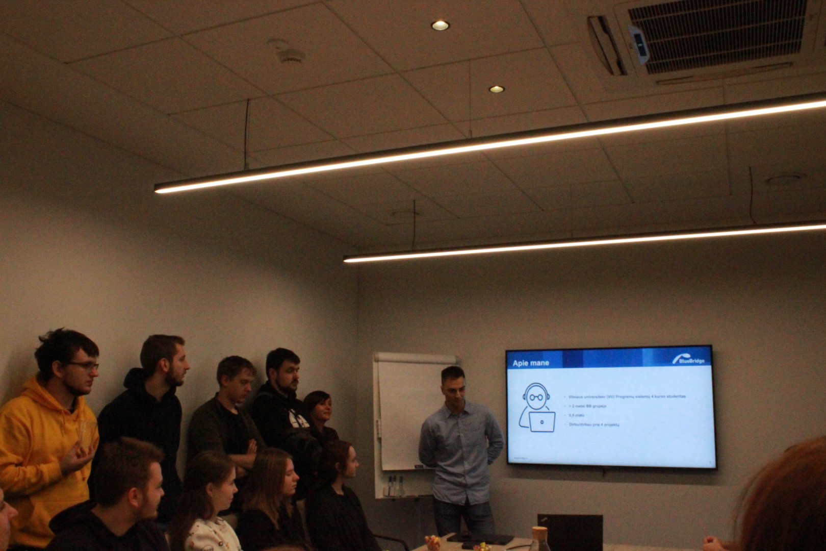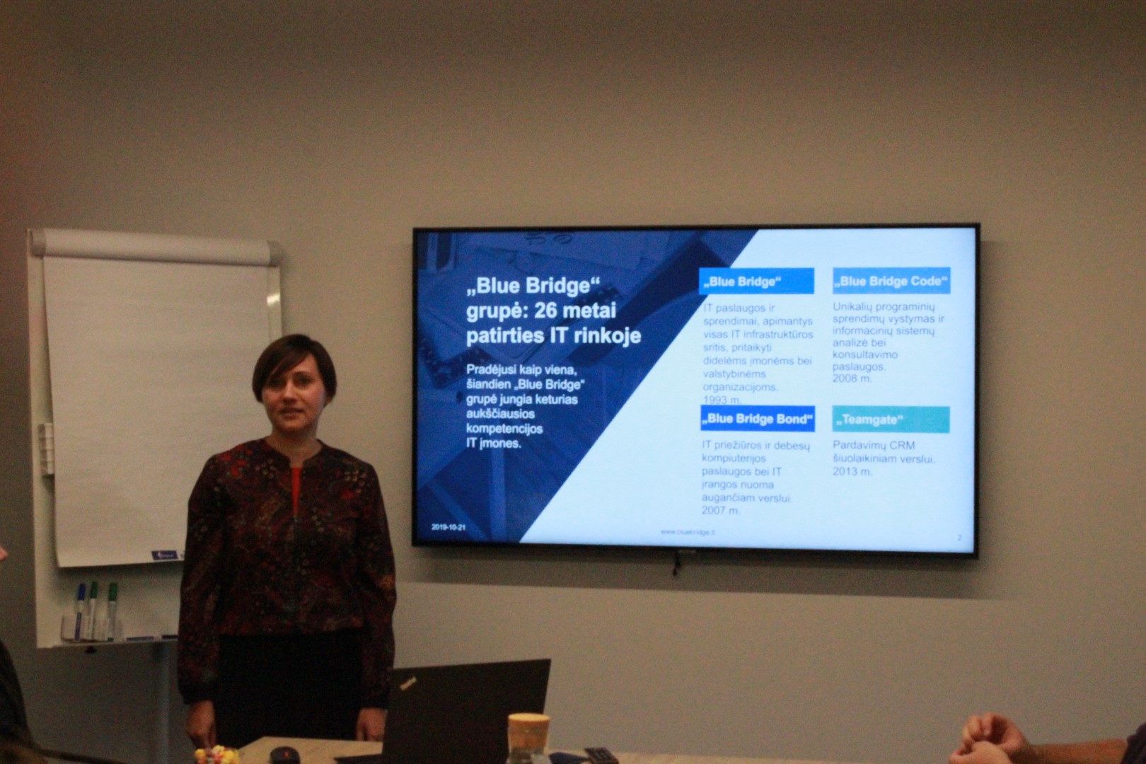 2019 m. spalio 21 d. rytą, būrys Informacinių sistemų trečiojo kurso studentų žygiavo link Elektronikos ir informatikos fakulteto socialinių partnerių UAB „Blue Bridge Baltic“ būstinės, kurioje jų laukė susitikimas su įmonės atstovais.