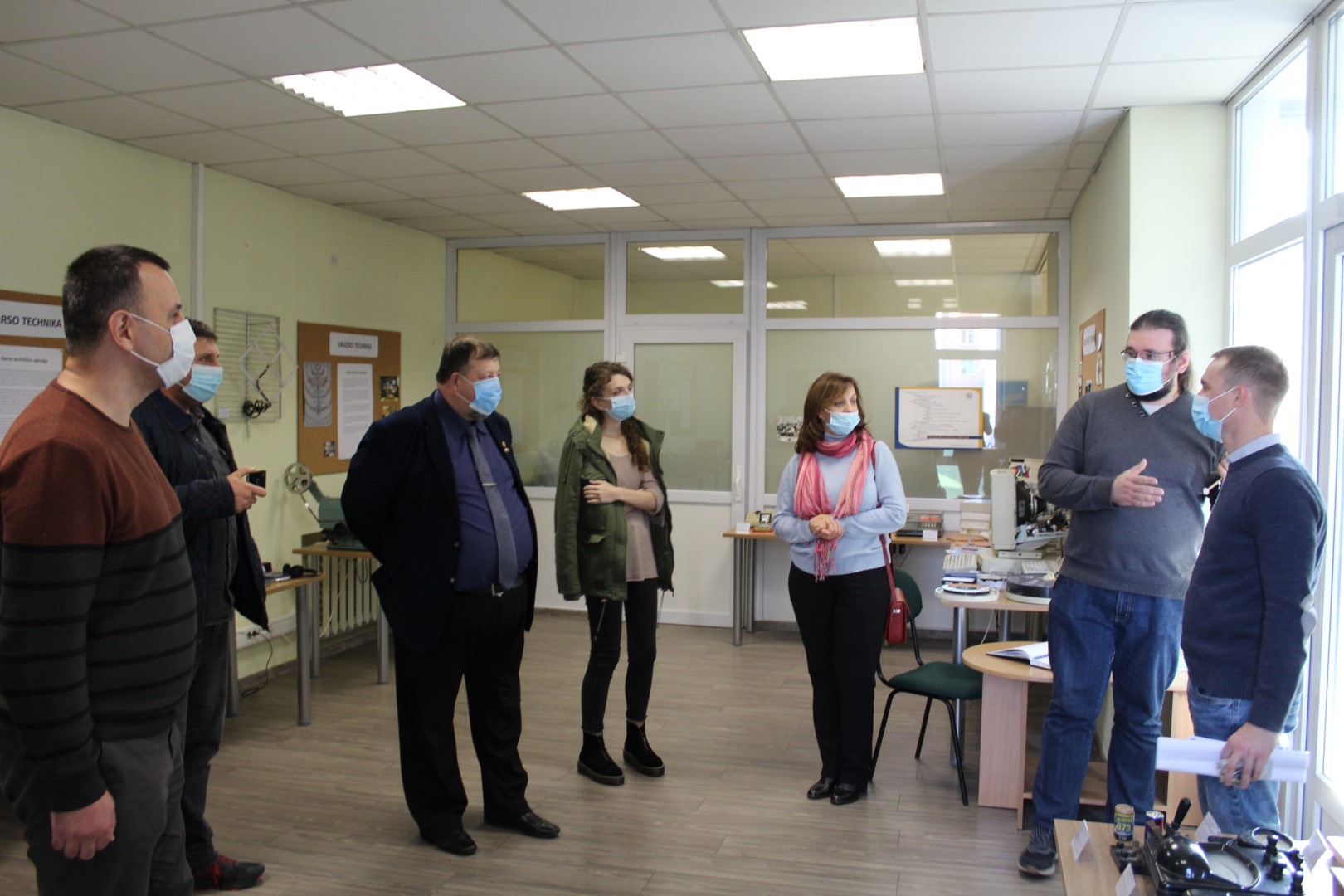 Š. m spalio 19 d. Elektronikos ir informatikos fakultete viešėjo svečių delegacija iš Ukrainos Kremenčiuko miesto, vadovaujama Kremenčiuko plėtros instituto (angl. Institute for Development of Kremenchuk) direktoriaus pavaduotojo tarptautiniams ryšiams Andrii Melnik. Susitikimo metu Elektronikos ir kompiuterių inžinerijos katedros vedėjas, dėstytojas Paulius Šakalys pristatė Fakultete vykdomas studijas, atskleisdamas glaudų bendradarbiavimą su veiklos pasauliu tobulinant studentų profesines kompetencijas. Kartu su Kremenčiuko Michailo Ostrogradskio nacionalinio universiteto atstove Maya Dernova, atsakinga už universiteto tarptautinio bendradarbiavimo plėtrą, aptarėme mūsų partnerinių aukštųjų mokyklų studentams bei dėstytojams aktualių projektų galimybes. Susitikimo finale Elektronikos laboratorijų vedėjas, dėstytojas Tomas Kasperavičius surengė įdomią ekskursiją Fakulteto muziejuje bei užsienio svečius sužavėjusiose moderniose Fakulteto laboratorijose.