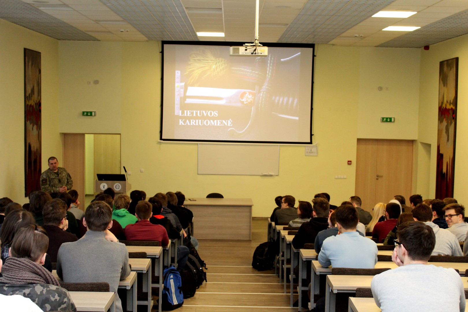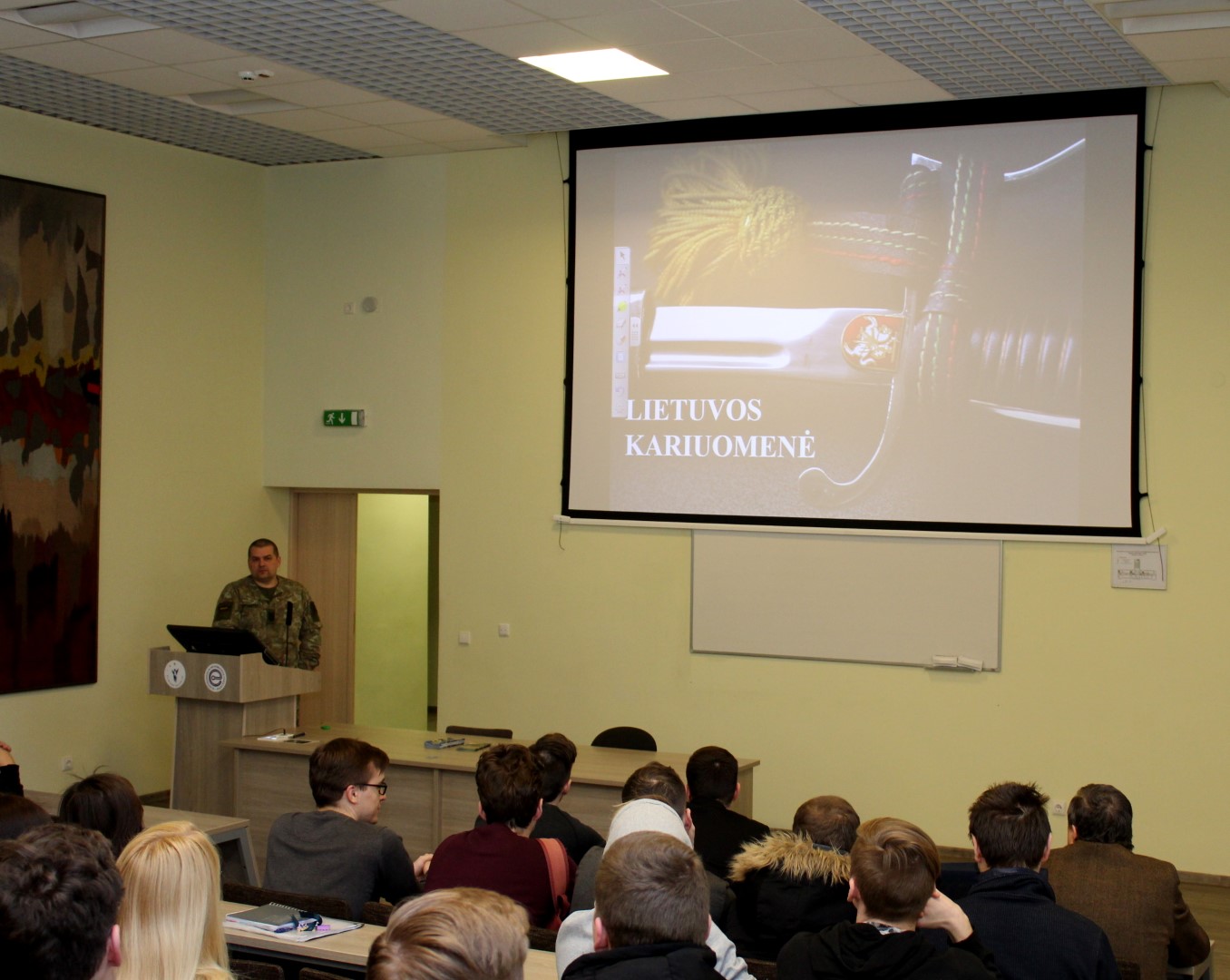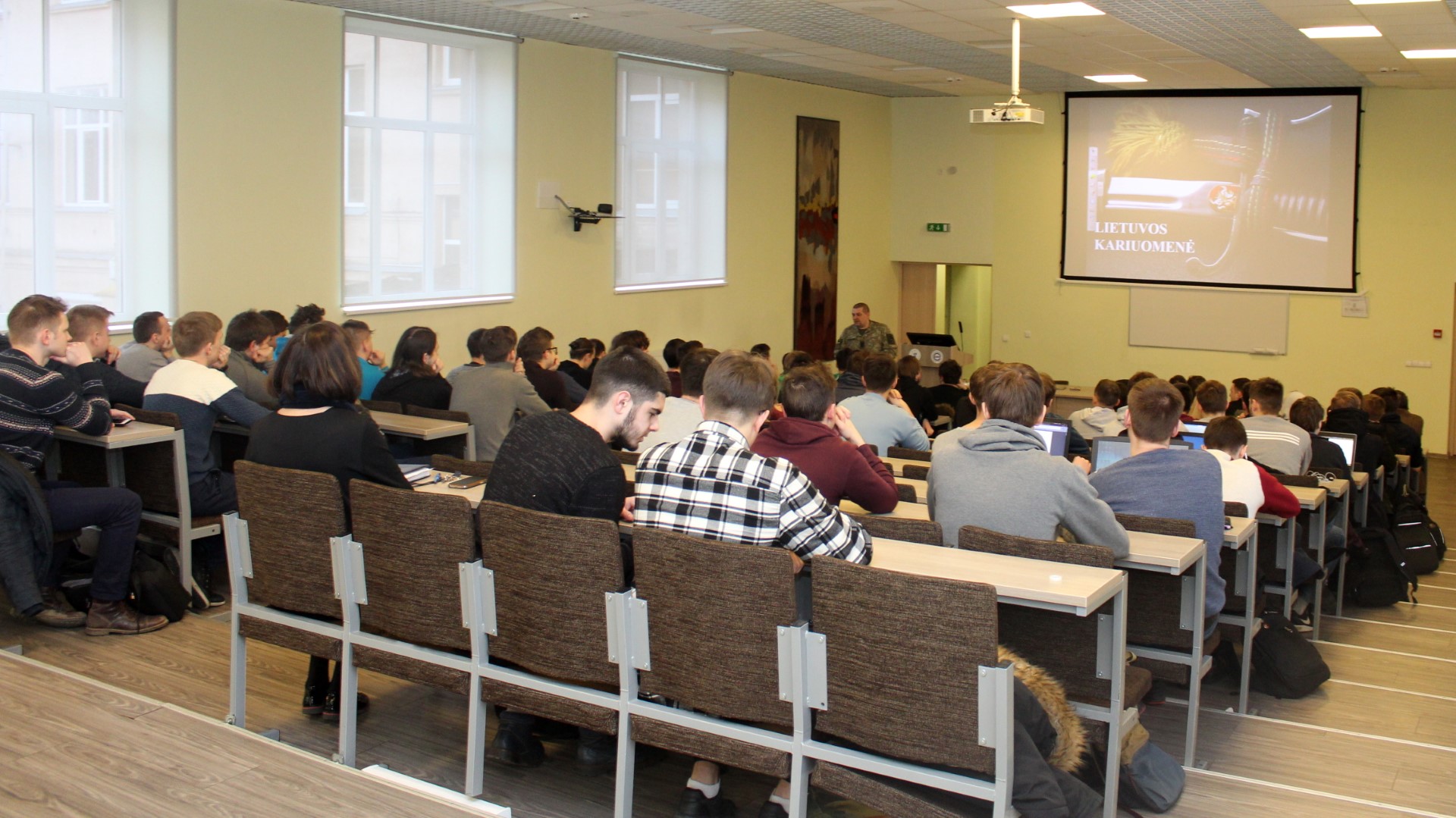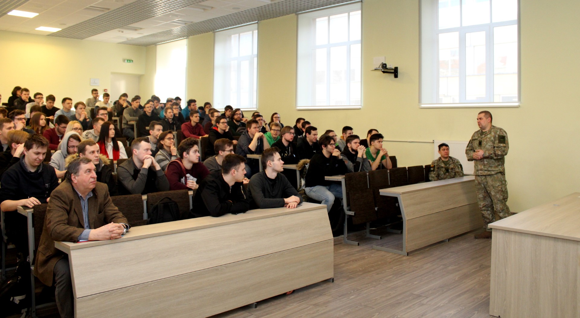 Elektronikos ir informatikos fakultete lankėsi Lietuvos krašto apsaugos savanorių pajėgų Didžiosios Kovos apygardos 8-osios rinktinės štabo Vilniaus RKPKS št. serž. Igoris Bartanovičius ir vyr. serž. Genadijus Matiušovas. Susitikime su studentais rinktinės kariai pristatė atsakingą ir labai svarbią kario profesiją, kariuomenę ir tarnybos būdus joje bei karjeros galimybes. Taip pat studentus supažindino su šauktinių tarnybos punktais, kariams suteikiamomis socialinėmis garantijomis ir jaunesniųjų karininkų vadų mokymais.