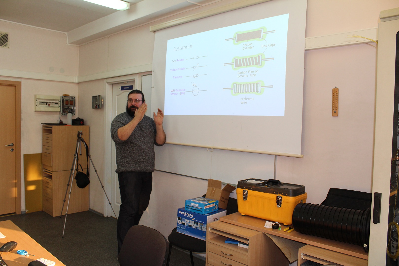 Renginio metu, Elektronikos katedros dėstytojas Vytautas Netikša bei Kompiuterių sistemų ir telekomunikacijų katedros dėstytojas Tomas Kasperavičius, dalyvius supažindino su kai kuriais elektronikos komponentais ir pagelbėjo konstruojant bei tyrinėjant nesudėtingus elektroninius įtaisus – „Laimės ratus”, kurie buvo sukurti „Tyrėjų nakties” renginiui.